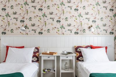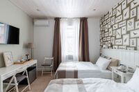 Здесь есть всё для комфортного проживания, включая кондиционер и телевизор с плоским экраном. У входа – шкаф для одежды, в комнате – либо две кровати (90×200), либо одна двуспальная кровать «king size» (180×200) с ортопедическими матрасами и подушками. В номере организовано удобное эргономичное пространство со столом и стульями. В распоряжении гостей холодильник, электрочайник, чай и принадлежности для приготовления горячих напитков.