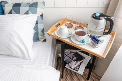 Гостям предлагаются мягкий халат и тапочки. Домашний уют в номере также создаёт текстиль из натуральных материалов – постельное бельё, плед, подушки, шторы.